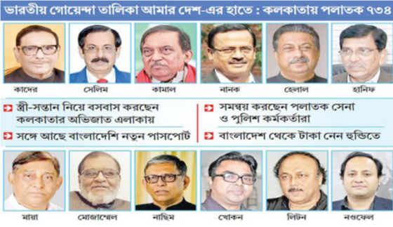 অনুসন্ধানে আরো জানা গেছে, পলাতক নেতাদের কাছে বাংলাদেশি পাসপোর্ট রয়েছে। বাংলাদেশ সরকারের তরফ থেকে এসব নেতার পাসপোর্ট ৫ আগস্টের পরপরই বাতিল করা হয়েছে। এরপরও ওই পাসপোর্ট তারা কীভাবে পেয়েছেনÑতা রহস্যজনক। আরো জানা গেছে, ভারতীয় গোয়েন্দা সংস্থার সঙ্গে যোগাযোগ ও সমন্বয় করছেন কলকাতায় অবস্থানরত একাধিক পুলিশ ও সামরিক কর্মকর্তা। অনুসন্ধানে এও জানা গেছে, পলাতকরা দীর্ঘদিন ধরে ভারতে বিপুল অর্থ পাচার করেছেন।