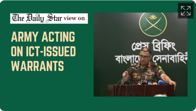 It was also reassuring to hear Adjutant General Md Hakimuzzaman affirm, at a press briefing held at the Army Headquarters on Saturday, that “Bangladesh Army respects all laws recognised by the Constitution.” We hope that this spirit will be carried through in all its future actions. The nation and the international community will be watching closely to ensure that the army’s public pledge to cooperate with the ICT’s judicial process is followed through. We can recall that the United Nations fact-finding mission’s report on the July uprising atrocities also called for ensuring accountability of members of security agencies. Any issue with technical clarity in the ICT Act, hopefully, will not affect the administration of justice.