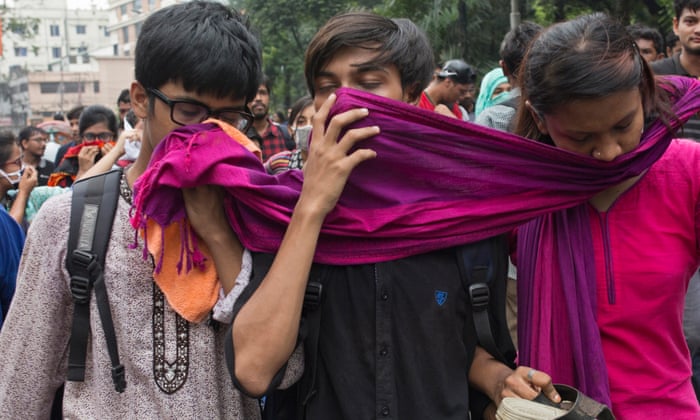 Police used teargas and rubber bullets against protestors in Dhaka, Bangladesh. Photograph: Munir Uz Zaman/AFP/Getty Images