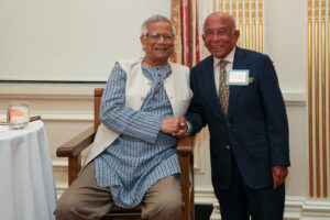 The following night, as the street protests gave way to diplomacy, I headed to the University Club of New York for a private gathering of the “Friends of Bangladesh.” Professor Yunus was there, the picture of calm after a day of New York tumult. The room was filled with people who work in Bangladesh, people who want to work in Bangladesh, and people who care about Bangladesh. The atmosphere was warm, collegial, and optimistic (the opposite of the previous night’s street scene).