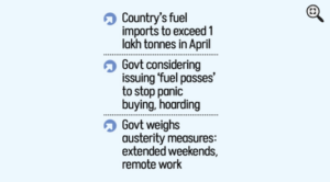 Officials said a digital “fuel pass” system based on QR codes is under consideration to curb panic buying and regulate distribution. Under the proposed system, each registered vehicle would receive a QR code allowing it to purchase a fixed quantity of fuel within a specified period.