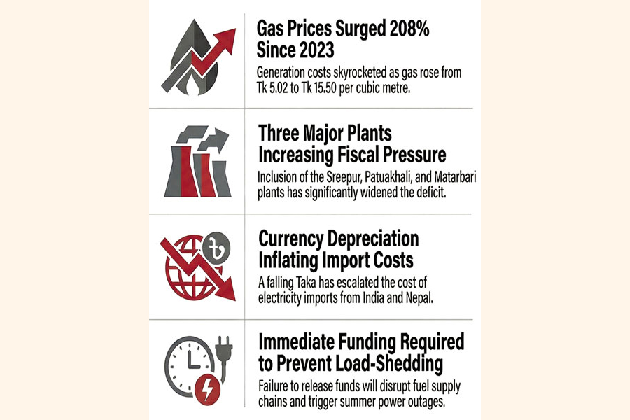 Officials said the Bangladesh Power Development Board (BPDB) is grappling with a widening financial deficit due to a persistent mismatch between high generation costs and regulated retail tariffs.