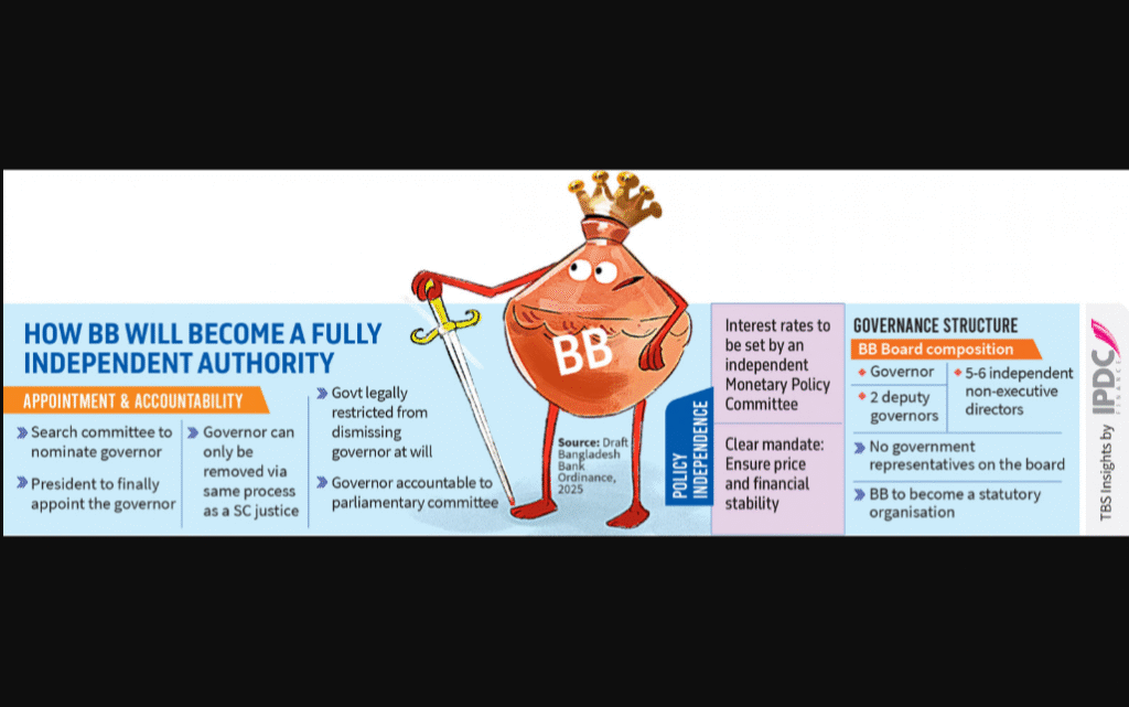 In this context, Bangladesh Bank proposed the Bangladesh Bank Ordinance 2025 framework based on four pillars consistent with peers, modern central bank practices and IMF recommendations.