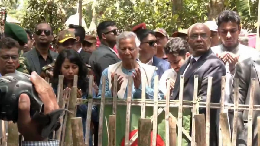 Chief Adviser to the interim government Prof Muhammad Yunus offered prayer at the grave of Abu Sayed in Rangpur’s Pirganj upazila this morning.